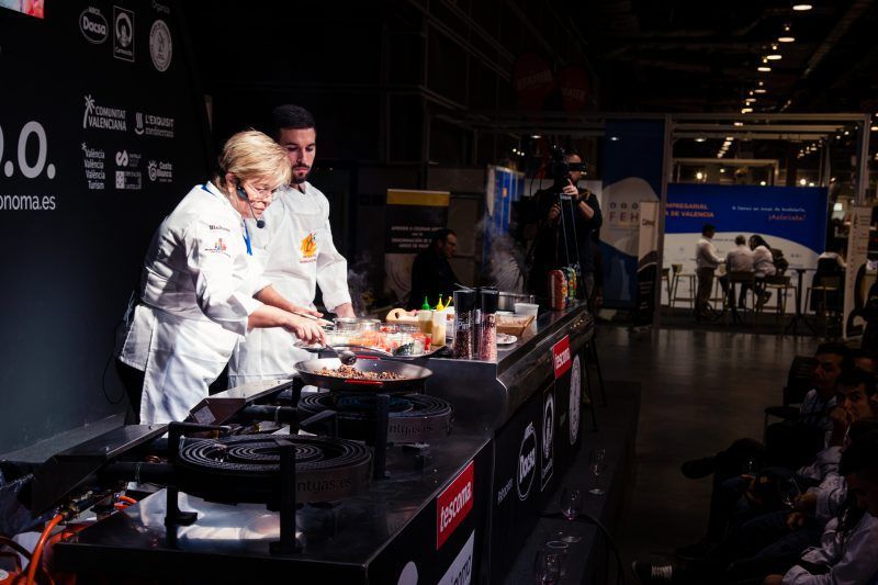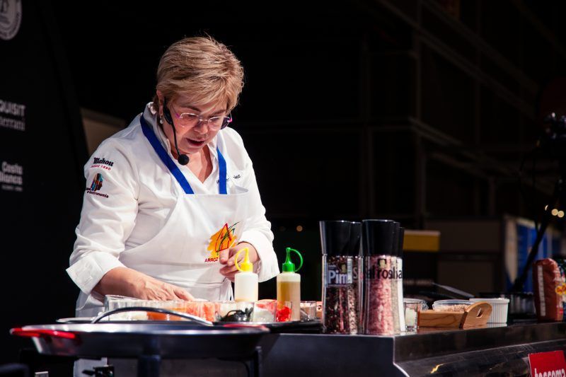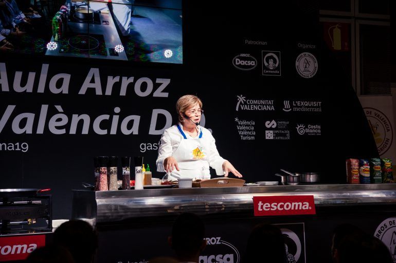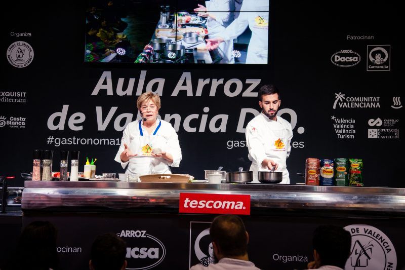 Gastronomía 2019 celebrada del 10 al 12 de noviembre, ha contando este año con 40 estrellas Michelin y 50 soles Repsol, sí como con grandes chefs entre las que se encuntra Mari Carmen Veléz (La Sirena, Petrer). Esta Feria Gastronómica del Mediterráneo es un foro abierto para grandes cocineros, fabricantes, distribuidores, pequeños comerciantes y artesanos. Una muestra pensada para que profesionales de la gastronomía experimenten y disfruten con catas, talleres, cocina en directo, debates y mucho más. Una de sus principales actividades «Cocina Central. Ponencias/Showcookings» ha estrenado un nuevo espacio para su edición 2019: el «Aula Arroz de Valencia D.O» donde la chef alicantina ha presentando tres platos de arroz seco.